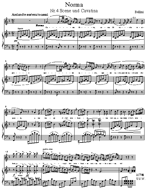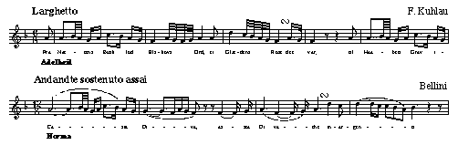 コメント:クーラウの曲は1827年作曲、ピアノスコアは没後1838年出版されました。ベッリーニの「ノルマ」は1831年ミラノで初演されました。と言うことはこの2曲の類似は偶然と言うことになります。